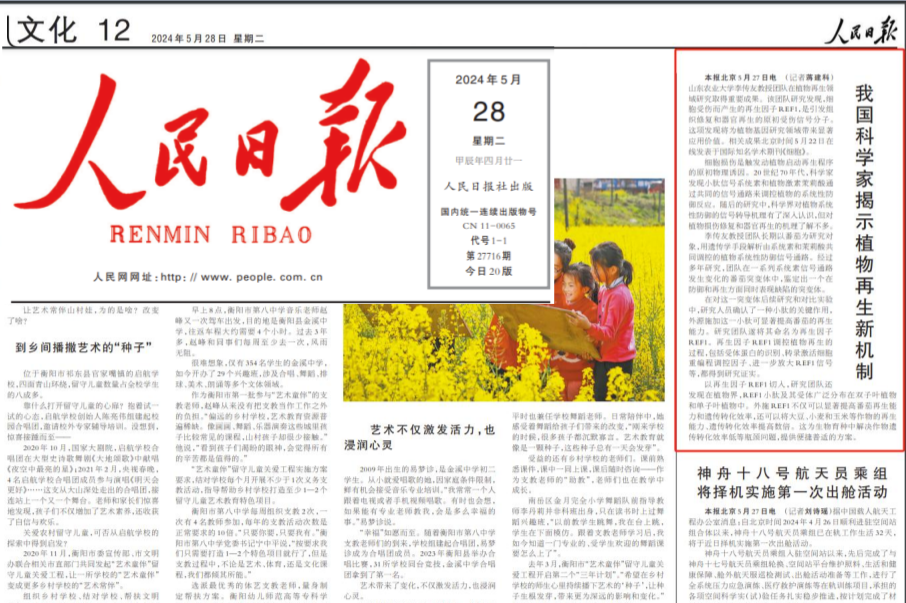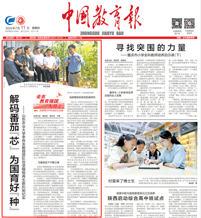 • 7月11日,《中國教育報》頭版頭條以《解碼番茄“芯” 為國育好“種”》為題紀實報道山東農業大學李傳友教授團隊攻堅植物再生新機制。