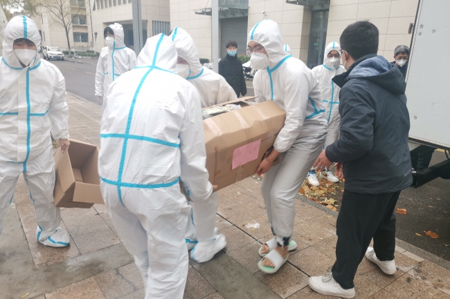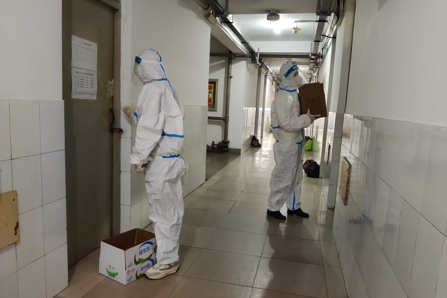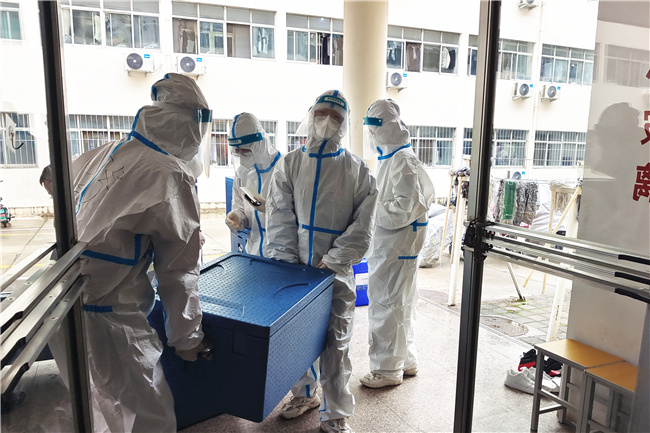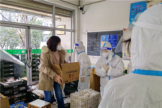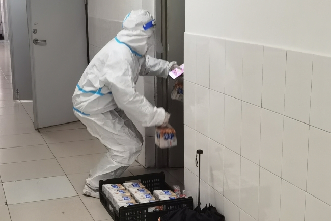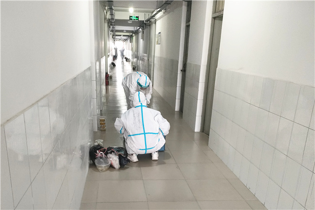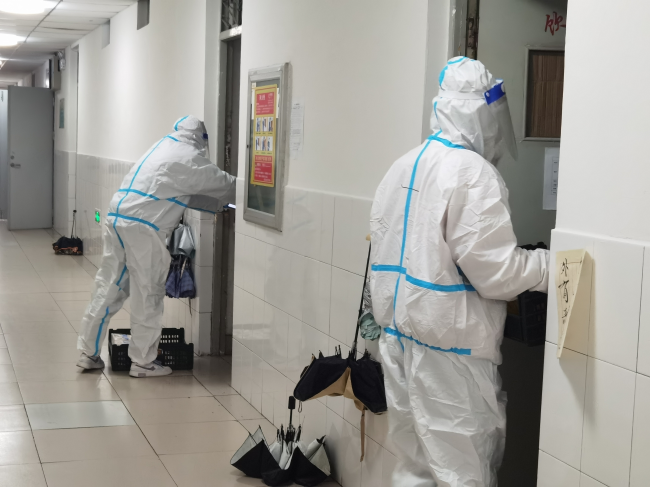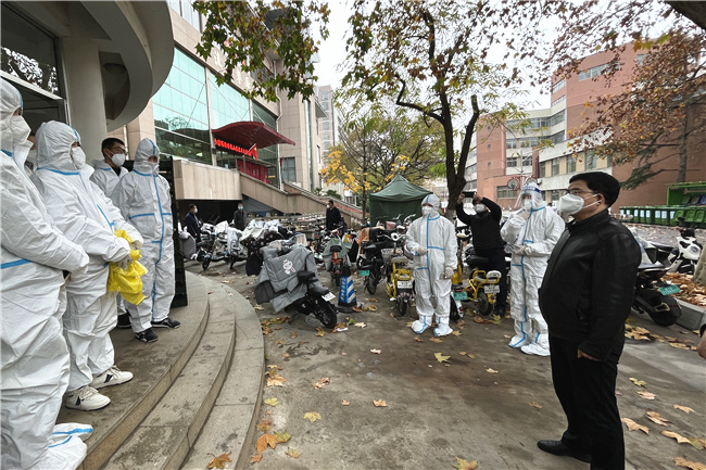 考慮到封控期間學生公寓成為了學生學習、生活的主陣地,學校還立即建立學生公寓疫情防控“四包”工作機制,也就是“校領導包樓宇”“正處級干部包樓層”“黨員突擊隊隊員包宿舍”“學生輔導員、學生骨干包學生”。從學校領導到學生骨干,參與“四包”工作機制所有人員都有明確的服務樓宇,從而自上而下把工作力量下沉到學生公寓一線,暢通與學生溝通交流渠道,了解學生思想動態等情況,精準地為學生做好服務保障工作,師生同心同向、同心同行、同心同力與新冠肺炎疫情“作斗爭”。