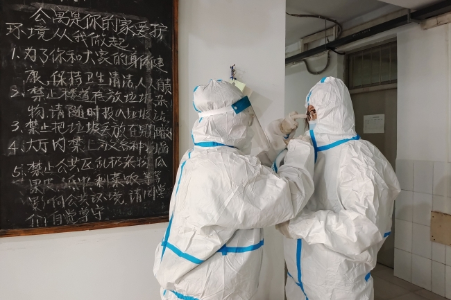 校醫院醫護人員全員出動,進入宿舍逐一進行核酸采樣。保安、物業、宿管等堅守崗位,堅決守好疫情防控的每一道門,外防輸入、內防反彈,最大限度降低交叉感染風險。
