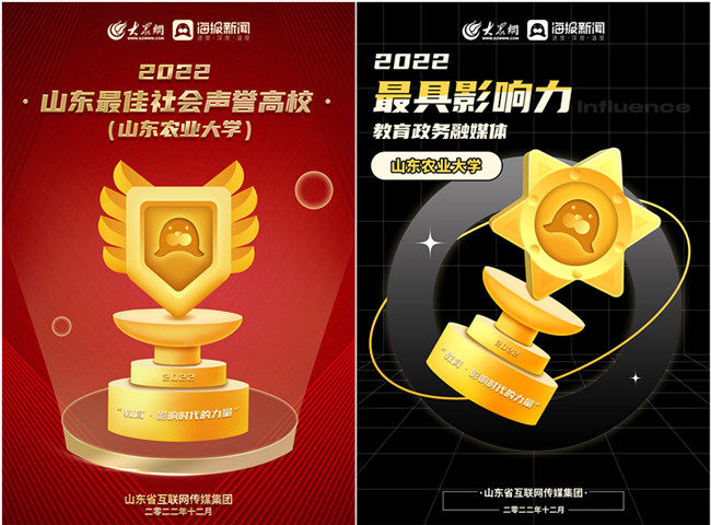 近日,由山東省互聯網傳媒集團大眾網·海報新聞發起的“教育·影響時代的力量”年度評選結果出爐,我校榮獲“2022山東最佳社會聲譽高校”和“2022山東最具影響力教育政務融媒體”榮譽稱號。