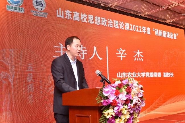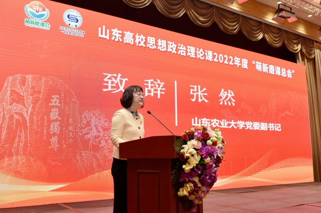 張然在致辭時對與會專家學者表示熱烈歡迎,并介紹了學校辦學情況和發展成就。她說,近年來,山東農業大學認真貫徹落實習近平總書記在學校思想政治理論課教師座談會上的重要講話精神,把馬克思主義學院作為重點學院、思想政治理論課作為重點課程加強建設,“大思政課”建設格局持續拓展。這次磨課總會的召開,必將為推動學校思政課教學改革創新注入新動力。學校將通過這一平臺,更好地吸收借鑒和有效利用省內外馬克思主義理論研究與思政課教育教學相關資源,培育一批有“生命力”“創造力”的思政課“萌新”示范課堂,鍛造一批個體與團隊同向同行的思政課教學示范團隊,努力打造立足山東、面向全國的高校思政課創新品牌,助力全省思政課建設提質培優、增值賦能。