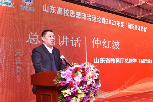 仲紅波在講話中充分肯定我省學校思政課建設取得的成績,并從堅持用習近平新時代中國特色社會主義思想鑄魂育人、啟動思政“金課”建設工程、打造“大思政課”的“山東樣板”、加大培育“名師”力度等方面,指出2023年需要全力抓好的重點工作。他說,學習貫徹黨的二十大精神是今年思政課建設的首要任務,要通過集體備課、研課磨課、課件推廣等方式,推動黨的二十大精神全面貫穿、有機融入思政課教學。同時,廣大思政課教師要認真學習、自覺踐行習近平總書記在學校思政課教師座談會上的重要講話精神,爭做馬克思主義堅定信仰者、忠實實踐者和積極傳播者,把好“政治關”,把好“教學關”,把好“素質關”,扎扎實實、腳踏實地把教學搞好,把道理講深、講透、講活,讓學生真心喜愛、終身受益、畢生難忘。