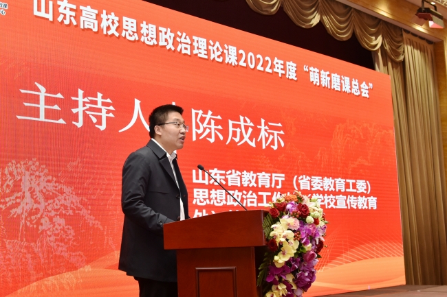 2月25日至26日,山東高校思想政治理論課2022年度“萌新磨課總會”在泰安舉辦,省內18所學校的19位入圍決賽的思政課青年教師分別在本科高校和高職高專兩個組現場進行教學展示。山東省教育廳總督學仲紅波,山東商業職業技術學院黨委書記張志東,山東省教育廳思政處處長陳成標,山東農業大學黨委副書記張然,黨委常委、副校長辛杰出席會議。開幕式由陳成標主持。