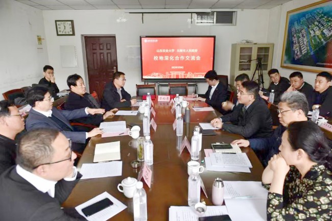 3月11日,“樂陵市走進山東農業大學深化合作行”活動在泮河校區舉行,學校黨委副書記、校長冷暢儉出席活動并參加座談,樂陵市委副書記、市長王峰參加活動。