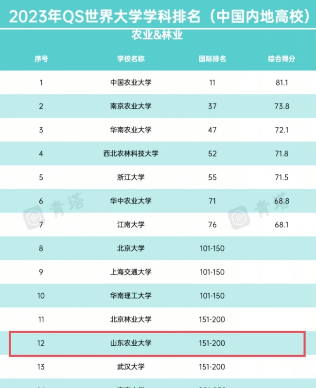 3月22日,QS全球教育集團(tuán)發(fā)布了第13次世界大學(xué)學(xué)科排名。山東農(nóng)業(yè)大學(xué)農(nóng)業(yè)&林業(yè)學(xué)科表現(xiàn)強(qiáng)勁,再入全球200強(qiáng),與中國大陸其他98所高校同時(shí)入榜。