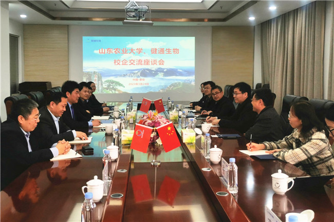 在健通生物科技公司生物醫藥產業園,王勇詳細了解健通生物生產運行狀況、科技成果轉化及創新藥物產品管線布局情況。華通控股集團總裁宋立廣詳細講述集團的發展歷程與現狀,并希望在未來研發體系共建、研究生聯合培養、人才招聘等層面深化合作。在山東邁科珍生物科技有限公司,王勇一行參觀了企業微生物實驗室、農業面源污染實驗室和樣品室。座談會上,公司創始人劉雪梅詳細介紹邁科珍的發展歷程、產品技術、市場應用等情況,并圍繞“生物固氮”這一專題與生科學院、資環學院教師開展“頭腦風暴”,初步確定了企業立項,學校組建團隊共同開展科研攻關的合作思路。