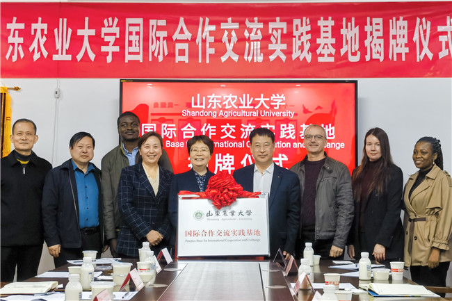 3月26日,山東農業大學國際合作交流實踐基地揭牌儀式在泰安金蘭奶牛養殖有限公司舉行,黨委常委、副校長李向東與泰安市科技局局長柳桂敏共同為基地揭牌。