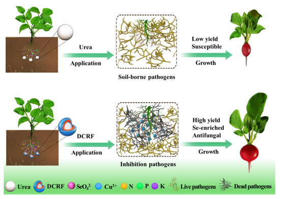 圖2. DCRF的控釋、硒供應(yīng)和抗真菌性能示意圖