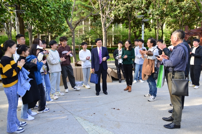 近日,“傳承——藝術學院第三屆空間建構創意展”正在岱宗校區青年廣場舉辦。4月10日,黨委副書記、校長冷暢儉來到展出現場進行參觀指導。黨委副書記張然陪同參加活動。