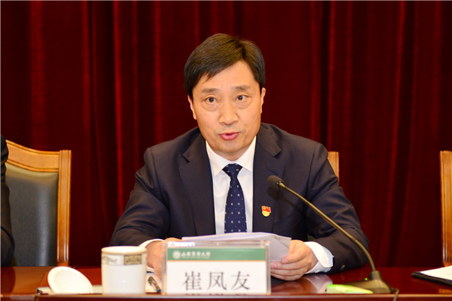 4月16日下午,學(xué)校召開(kāi)學(xué)習(xí)貫徹習(xí)近平新時(shí)代中國(guó)特色社會(huì)主義思想主題教育工作會(huì)議。會(huì)議深入學(xué)習(xí)貫徹習(xí)近平總書(shū)記重要講話精神,按照黨中央部署和省委要求,對(duì)學(xué)校開(kāi)展主題教育作出安排部署。省委第二十五巡回指導(dǎo)組組長(zhǎng)崔鳳友作指導(dǎo)講話,學(xué)校黨委書(shū)記徐劍波主持會(huì)議并講話。