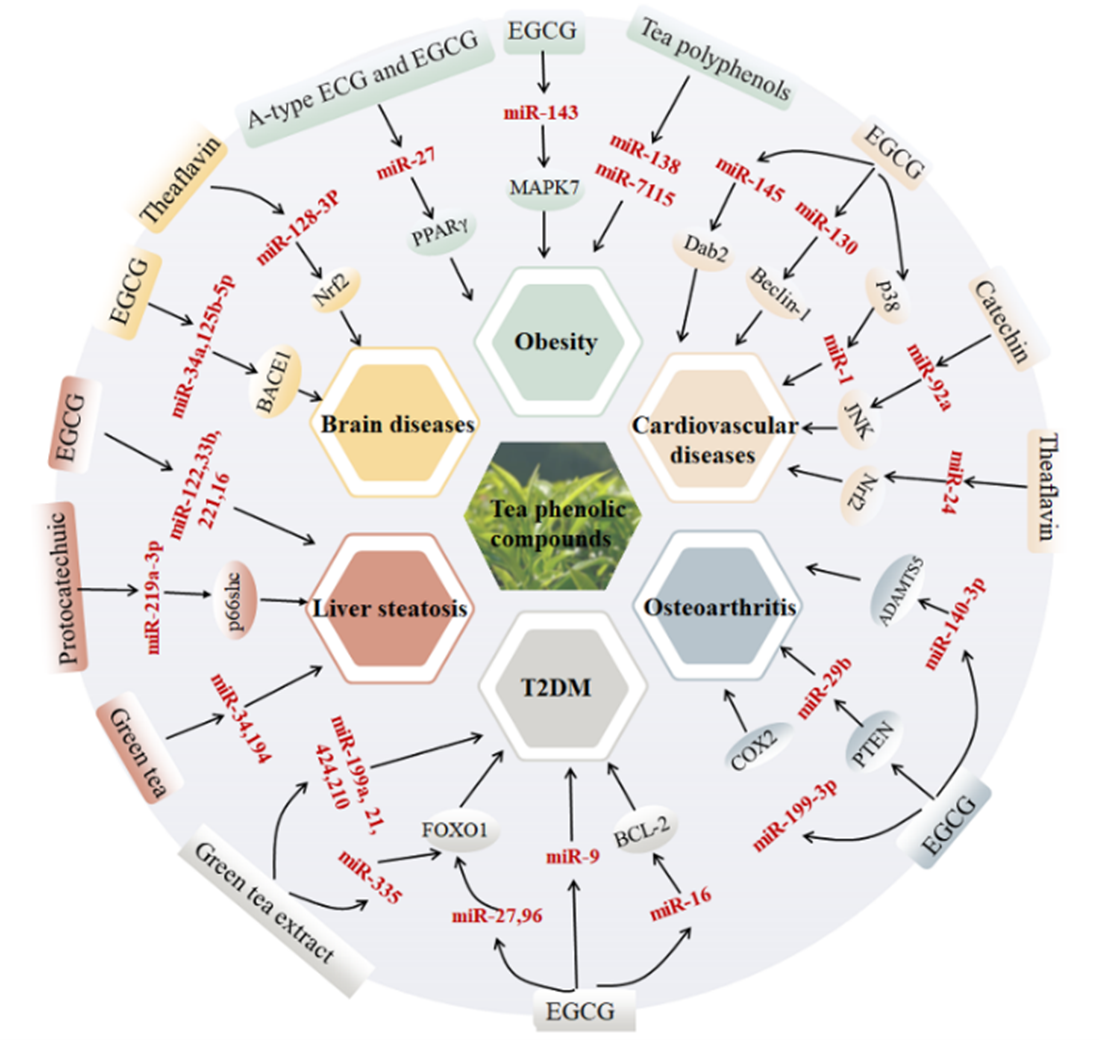 圖1. MiRNA介導茶多酚類化合物對慢性疾病的保護作用