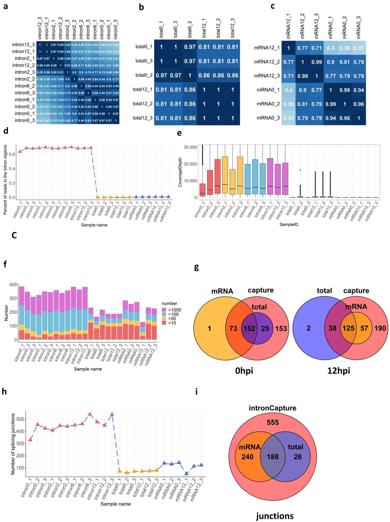 圖1. Intron-capture RNA-seq與total RNA-seq和mRNA-seq的比較