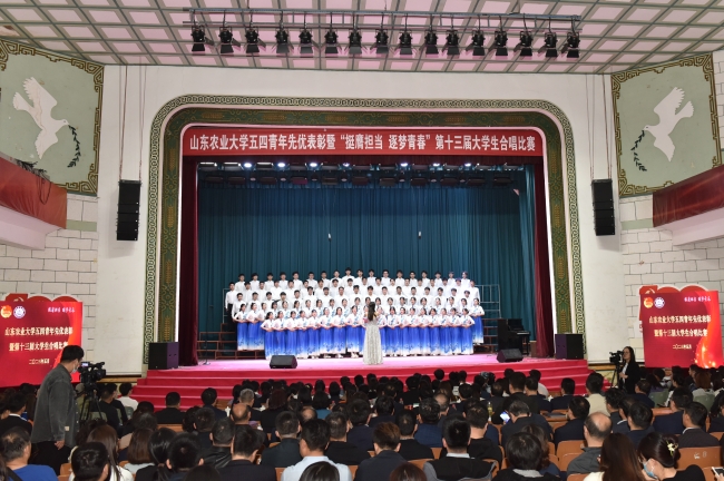 5月6日下午,岱宗校區西禮堂歌聲嘹亮、掌聲陣陣,山東農業大學五四青年先優表彰暨“挺膺擔當 逐夢青春”第十三屆大學生合唱比賽拉開帷幕。省委第二十五巡回指導組副組長張榮慶、組員張榮霞,學校領導徐劍波、冷暢儉、嵇景濤、張然、辛杰、李向東、高立明、劉戈、王勇出席活動,并為獲表彰的青年先優頒獎。