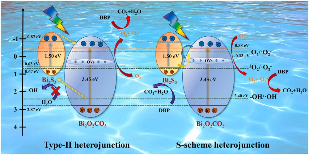 圖1. Bi2O2CO3/Bi2S3光催化劑降解DBP機理示意圖