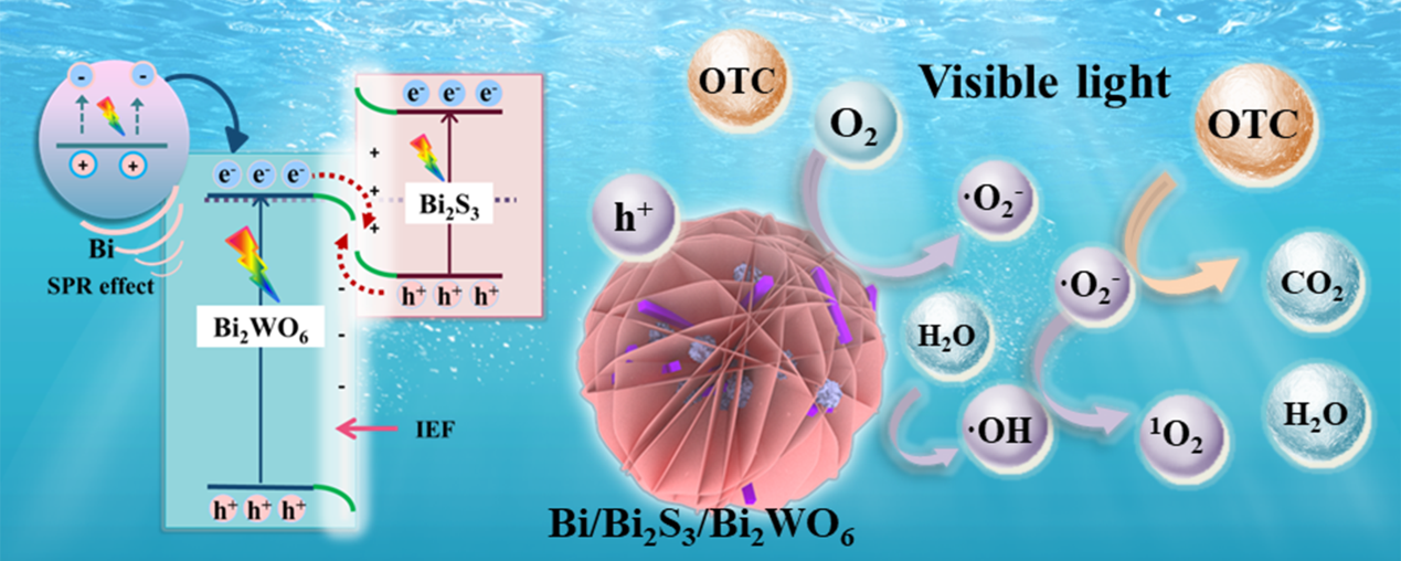 進展2:在期刊《Environmental Pollution》發表了題為“One-pot solvothermal synthesis of Bi/Bi2S3/Bi2WO6S-scheme heterojunction with enhanced photoactivity towards antibiotic oxytetracycline degradation under visible light”的研究論文。王軍教授為該論文的通訊作者,博士研究生丁佳為該論文的第一作者,山東農業大學為論文第一完成單位。