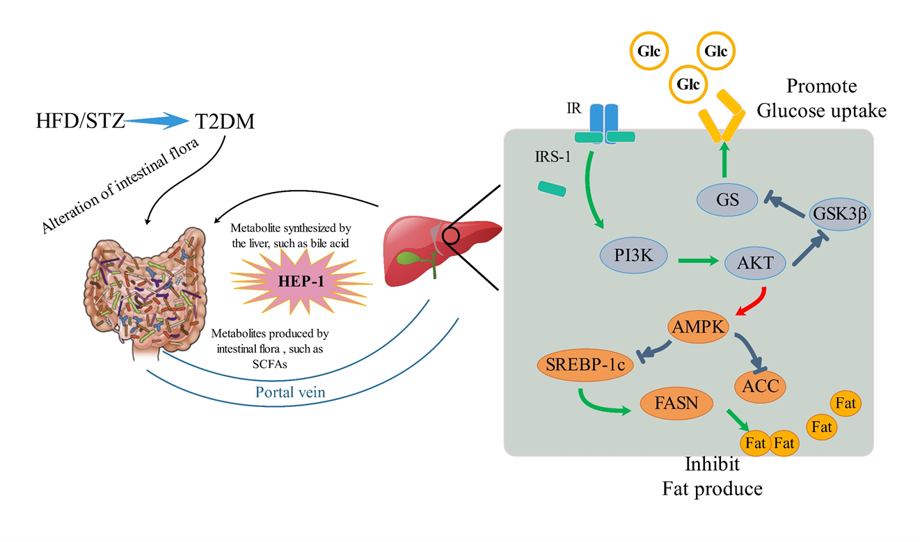 該研究從猴頭菇(Hericium erinaceus)子實體中分離純化出一種組分多糖(HEP-1)并進行結構解析,揭示了HEP-1通過IRS/PI3K/AKT、AMPK、“腸-肝軸”等途徑發揮對2型糖尿病引起的糖脂代謝紊亂的調控作用機理,為飲食預防、干預2型糖尿病提供新的思路,為相關功能性食品的開發提供理論依據,具有一定實踐應用價值。