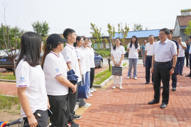 在武城縣武城鎮尚石莊村,冷暢儉詳細了解了鄉村治理、產業發展、鄉村規劃等情況,看望了正在村莊開展“萬名學子聯萬村”暑期大調研的師生。在座談交流中,冷暢儉聽取了參加調研師生在調研過程中的感受和體會,對參加調研師生的飽滿熱情和認真態度給予充分肯定,對市縣鎮村為大調研工作提供的支持和幫助表示感謝。他表示,總書記給中國農大科技小院學生的回信,給全國涉農高校學生發出了要“志存高遠、腳踏實地,把課堂學習與鄉村實踐緊密結合起來,厚植愛農情懷、練就強農興農本領”的號召,要通過大調研真正走進鄉村、理解鄉村、助力鄉村。學校也將通過大調研充分掌握鄉村一線農情、社情、產情,不斷推動校地、校社、校產的深度融合,更好服務鄉村振興。他詳細詢問了師生在調研過程中遇到的問題和困難,并督促學校部門、學院加強協調和幫助,更好支撐調研活動的順利開展。