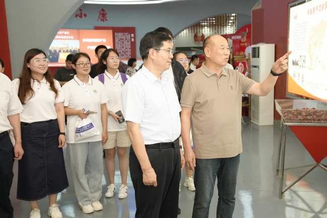 冷暢儉還先后考察了中椒英潮辣業發展有限公司、古貝春集團有限公司、山東龍昌動物保健品有限公司、濟南鑫磊精密機械有限公司。他說,山東農業大學要率先在省屬高校實現雙一流的突破,不僅要培養高質量的人才,更要促進山東農業高質量發展,而只有扎根齊魯大地才能找到解決問題的答案。只有與企業做好結合文章,與產業深度融合,圍繞產業的發展需求實施人才培養、開展科學研究、破解企業發展的難題,才能有效推動山東三產融合高質量發展,進一步提升學校的人才培養質量、科技創新水平和社會服務能力。