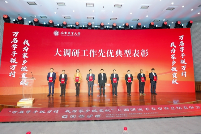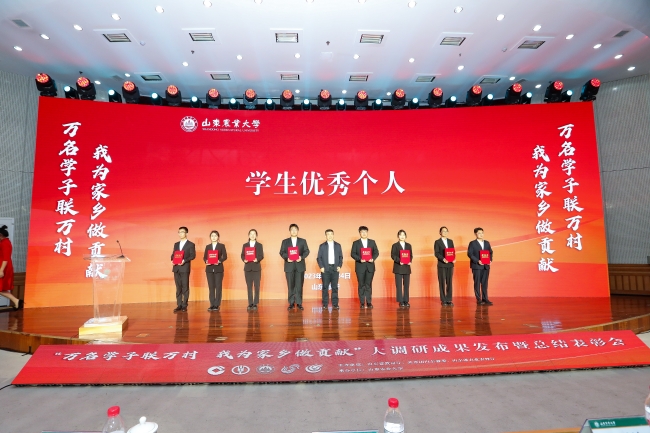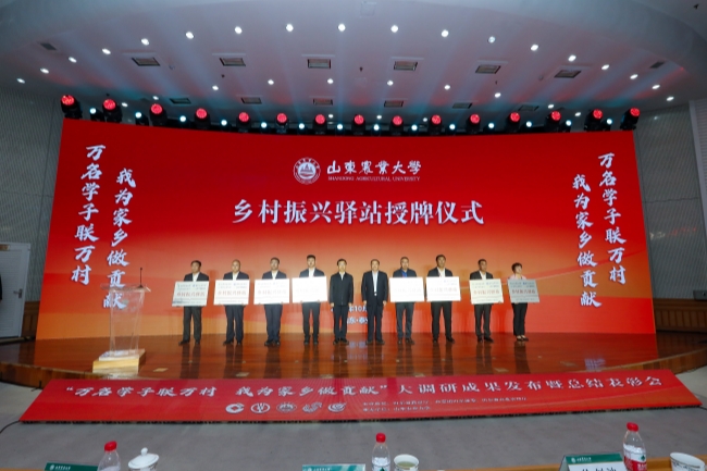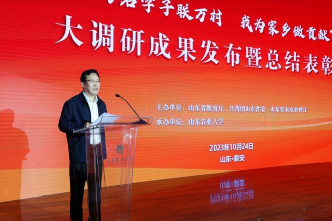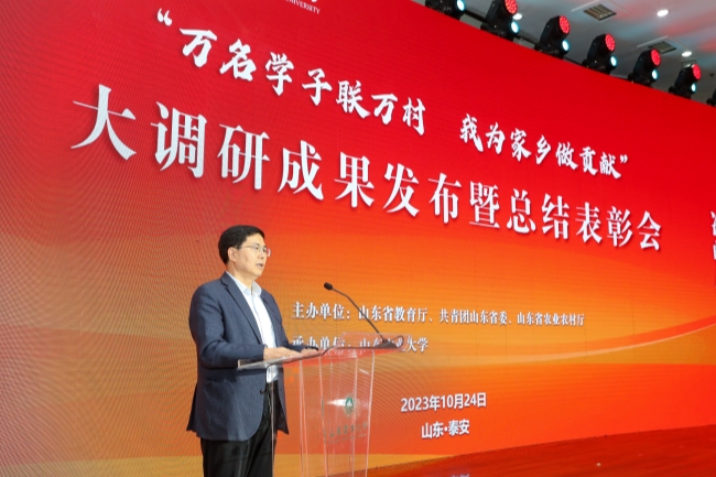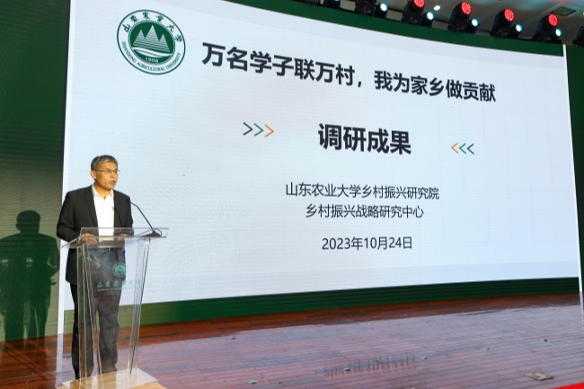 10月24日,山東農(nóng)業(yè)大學(xué)舉行“萬名學(xué)子聯(lián)萬村,我為家鄉(xiāng)做貢獻”大調(diào)研成果發(fā)布暨總結(jié)表彰會,發(fā)布《山東省鄉(xiāng)村振興調(diào)研報告》和鄉(xiāng)村振興驛站APP,表彰大調(diào)研工作先優(yōu)典型,現(xiàn)場同時啟動2023全國重點新聞媒體山東高校調(diào)研行活動。