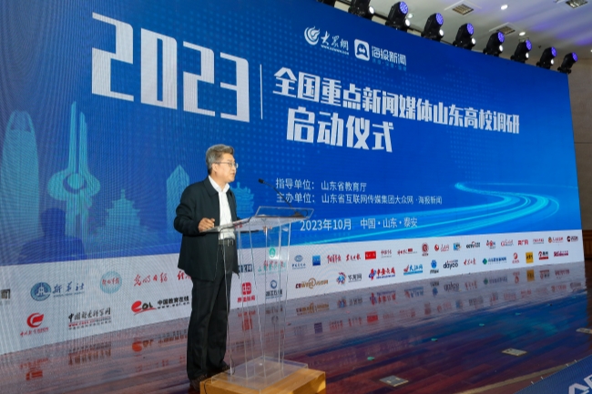 山東省互聯(lián)網(wǎng)傳媒集團總經(jīng)理贠瑞虎致辭中表示,山東農(nóng)業(yè)大學(xué)作為省屬高校的優(yōu)秀代表,在農(nóng)業(yè)強國、教育強國、科技強國、人才強國等重大戰(zhàn)略部署上扛起了時代重任,在打造鄉(xiāng)村振興齊魯樣板,推動黃河流域生態(tài)保護和高質(zhì)量發(fā)展中交出精彩答卷。希望參與此次活動的媒體利用豐富的素材案例,深入調(diào)研采訪,充分發(fā)掘和報道我省教育事業(yè)的發(fā)展成就及內(nèi)涵特色。