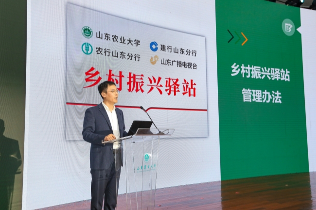 山東農(nóng)業(yè)大學(xué)農(nóng)業(yè)大數(shù)據(jù)中心副主任張亮教授介紹鄉(xiāng)村振興驛站管理和APP建設(shè)有關(guān)情況。與會領(lǐng)導(dǎo)共同發(fā)布山東農(nóng)業(yè)大學(xué)開發(fā)的鄉(xiāng)村振興驛站APP,并為全省16地市32個鄉(xiāng)村振興驛站代表進行授牌。根據(jù)《鄉(xiāng)村振興驛站管理辦法(試行)》的規(guī)定,基于對5,5077個行政村調(diào)研數(shù)據(jù)綜合分析研判遴選,決定首批設(shè)立1003個鄉(xiāng)村振興驛站。鄉(xiāng)村振興驛站將集聚山東農(nóng)大、建設(shè)銀行山東分行、農(nóng)業(yè)銀行山東分行和山東廣播電視臺等四方優(yōu)勢,深入開展成果轉(zhuǎn)化、技術(shù)推廣、人才培養(yǎng)、信息和金融服務(wù),全面服務(wù)地方產(chǎn)業(yè)發(fā)展。