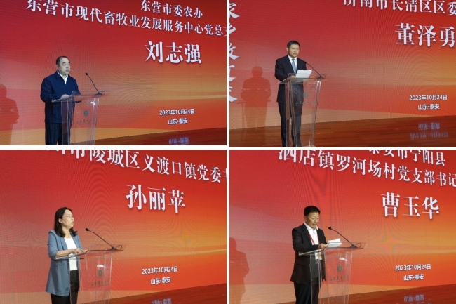 東營市委農(nóng)辦、東營市現(xiàn)代畜牧業(yè)發(fā)展服務(wù)中心黨總支書記、主任劉志強,濟南市長清區(qū)區(qū)委副書記董澤勇,德州市陵城區(qū)義渡口鎮(zhèn)黨委書記孫麗蘋,泰安市寧陽縣泗店鎮(zhèn)羅河廠村黨支部書記、村主任曹玉華作為地方代表分別發(fā)言,共同研討大調(diào)研工作,希望今后與山東農(nóng)業(yè)大學(xué)等單位進一步互通有無、深化合作,推動鄉(xiāng)村振興不斷向多領(lǐng)域、深層次、立體式拓展。