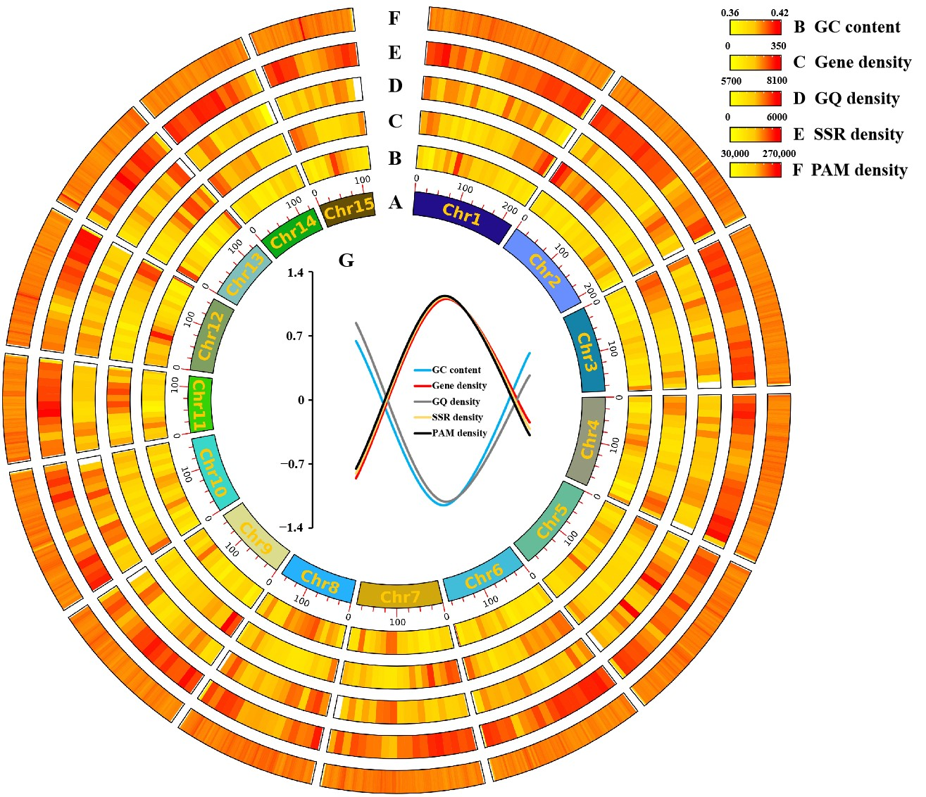 CRISPR/Cas9是一種高效的基因組編輯工具,茶樹基因組中編輯位點(diǎn)的鑒定及潛在影響因素尚未得到研究。在本研究中,利用生物信息學(xué)方法鑒定shuchazao基因組中包括編輯位點(diǎn)、simple sequence repeats (SSR)、G-四鏈體、基因密度的特征及其關(guān)系。在基因組中共鑒定了248,134,838個(gè)潛在的編輯位點(diǎn),觀察到AGG、TGG、CGG、GGG、NGG五種PAM類型,其中66,665,912個(gè)被發(fā)現(xiàn)是有特異性的,它們存在于基因所有結(jié)構(gòu)元件中。聯(lián)合分析中在染色體中發(fā)現(xiàn)了GC含量、GQ密度、PAM密度高相反基因密度、SSR密度低的特征區(qū)域,并發(fā)現(xiàn)該區(qū)域與次生代謝物和氨基酸生物合成途徑相關(guān)。所鑒定的編輯位點(diǎn)與影響元件SSR標(biāo)記為茶樹功能研究和分子育種提供了有價(jià)值的工具,也給予了其他作物育種參考。