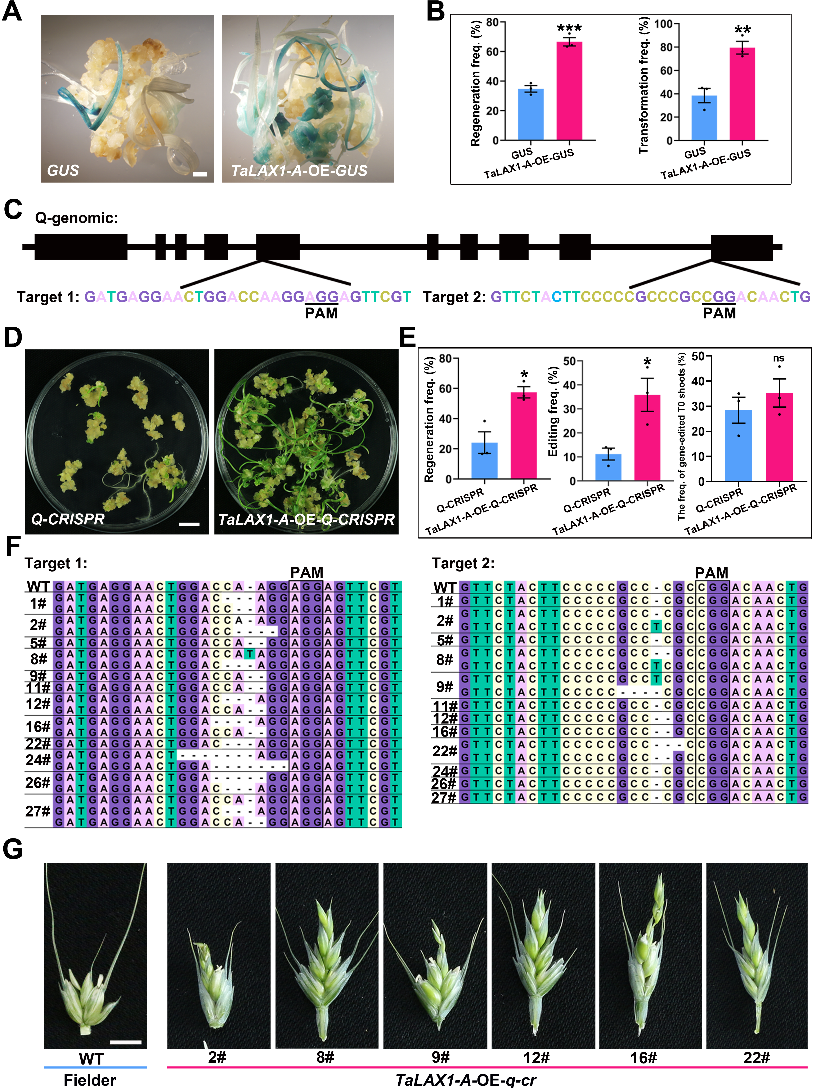圖2. 過量表達TaLAX1提高遺傳轉化和基因編輯效率