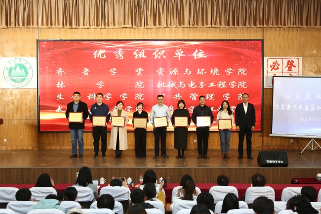11月21日,山東農業大學信息素養大賽暨知識產權競賽決賽在泮河校區圖信樓第一報告廳舉行。學校黨委常委、副校長單國杰出席活動并為優秀組織單位頒獎。