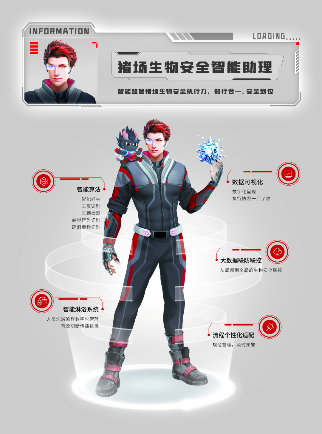 “畜禽牧場生物安全智能防控關鍵技術及裝備”是基于人工智能技術、機器視覺技術和物聯網技術、創造制作新興人機結合的牧場生物安全智能防控系統。團隊開發了智能防控視頻異常監測AI算法,實現了全天候24小時自動識別異常視頻,實時預警并高效處理各種突發的生物安全防疫事件,同時能保存數據供事后取證分析,以“非接觸、零應激”的方式,實現了豬場大群體核心生產數據實時精準的采集和分析。該產品在行業內獲得了廣泛認同,可在畜禽企業大范圍推廣使用,對牧場生物安全防控具有十分重要的意義。