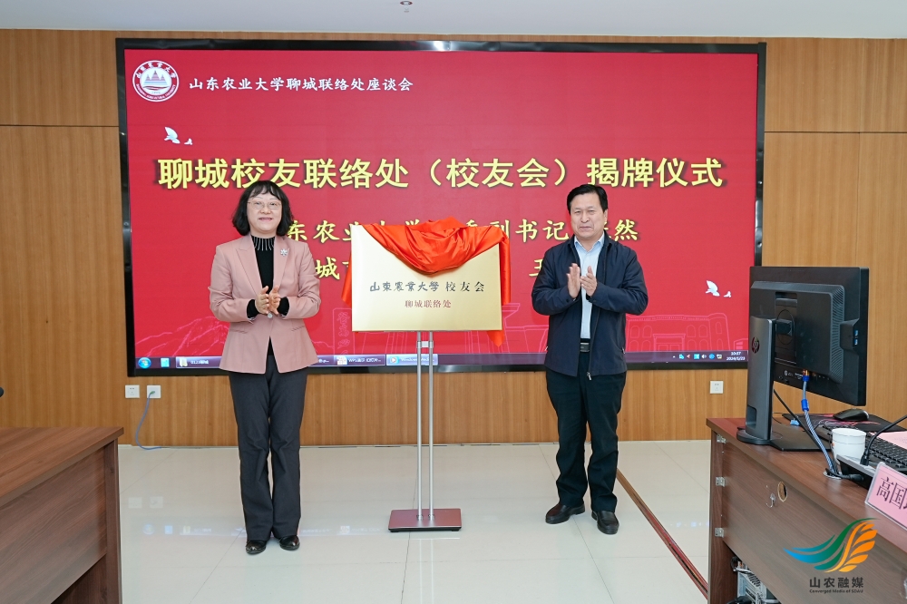 山農(nóng)融媒1月27日訊 1月23日,山東農(nóng)業(yè)大學(xué)聊城聯(lián)絡(luò)處理事會換屆大會暨校友座談會在聊城舉辦,山東農(nóng)業(yè)大學(xué)黨委副書記張然、聊城市政協(xié)副主席王福祥出席會議并共同為山東農(nóng)業(yè)大學(xué)校友會聊城聯(lián)絡(luò)處揭牌。