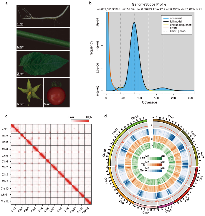圖1. 醋栗番茄LA1589基因組組裝概況與特征