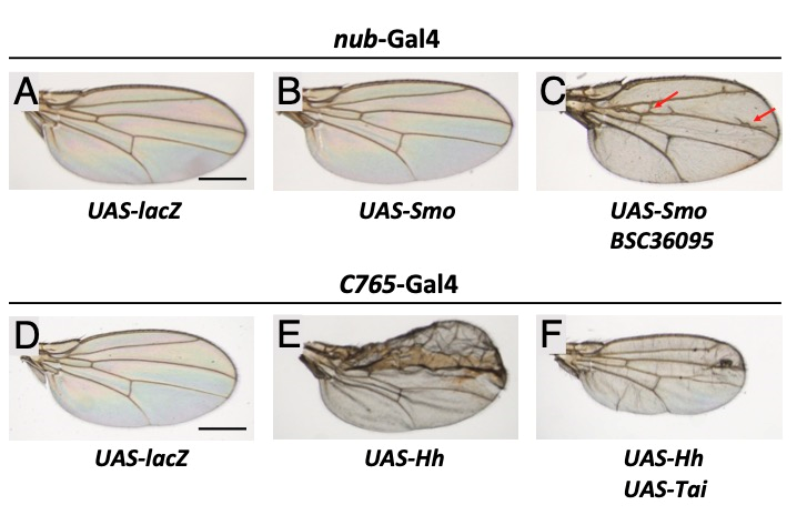 圖1. 過表達/敲降Tai均導致翅脈紊亂
