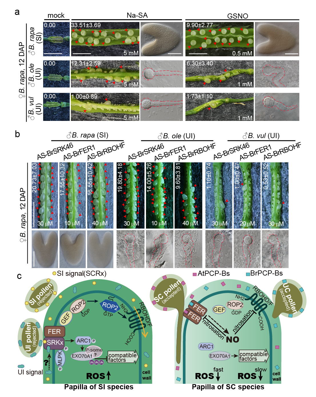 該成果發現大白菜通過SRK受體識別遠緣物種的花粉,并通過升高活性氧抑制遠緣花粉的生長,揭示了大白菜遠緣雜交障礙的形成機制,研發了打破雜交障礙的育種技術;開辟了遠緣育種新途徑,為充分利用遠緣物種優異基因資源進行種質創新提供科技支撐。