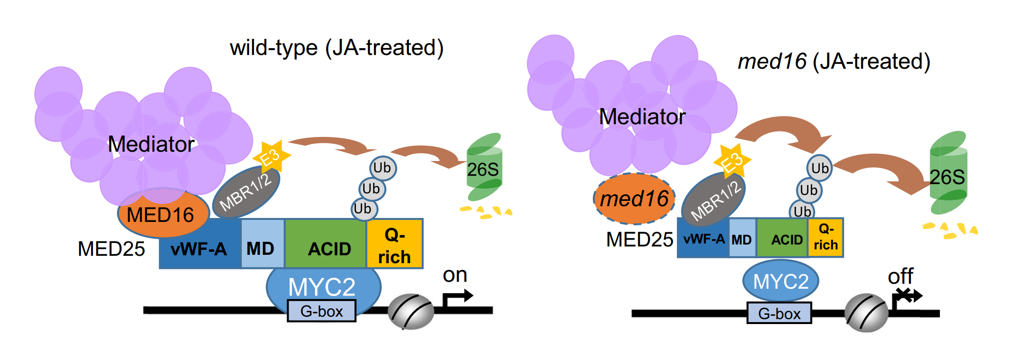 圖1 MED16–MBR模塊通過調控MED25穩定性進而精細調節茉莉酸信號強度