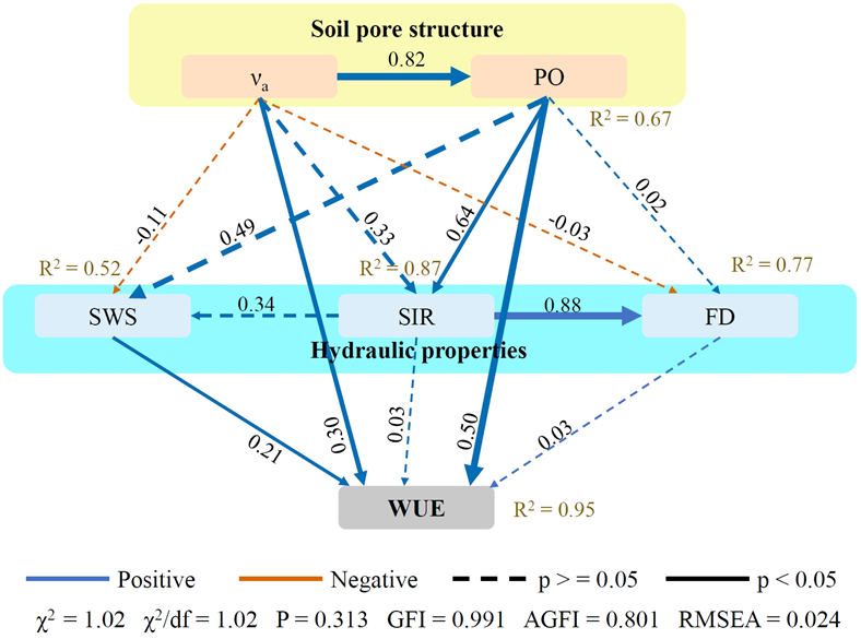 作為我國(guó)冬小麥主產(chǎn)區(qū),華北平原正面臨水資源短缺的挑戰(zhàn)。長(zhǎng)期深松具有增產(chǎn)和節(jié)水作用,但基于土壤孔隙網(wǎng)絡(luò)的水力特性及其影響水分利用效率的機(jī)制仍缺乏系統(tǒng)研究。本研究基于長(zhǎng)期定位試驗(yàn),探究了長(zhǎng)期深松對(duì)冬小麥農(nóng)田土壤孔隙結(jié)構(gòu)、水力特性以及水分利用效率的影響,并通過相關(guān)性分析與結(jié)構(gòu)方程模型,探究了三者間的關(guān)系。研究結(jié)果表明,與旋耕處理相比,深松顯著優(yōu)化土壤孔隙結(jié)構(gòu)、改善土壤水力特性和提高水分利用效率。此外,深松主要通過直接增加土壤大孔隙比和孔隙連通性或間接增加土壤儲(chǔ)水量實(shí)現(xiàn)水分高效利用。研究結(jié)果可為華北平原冬小麥高效用水提供理論依據(jù)。