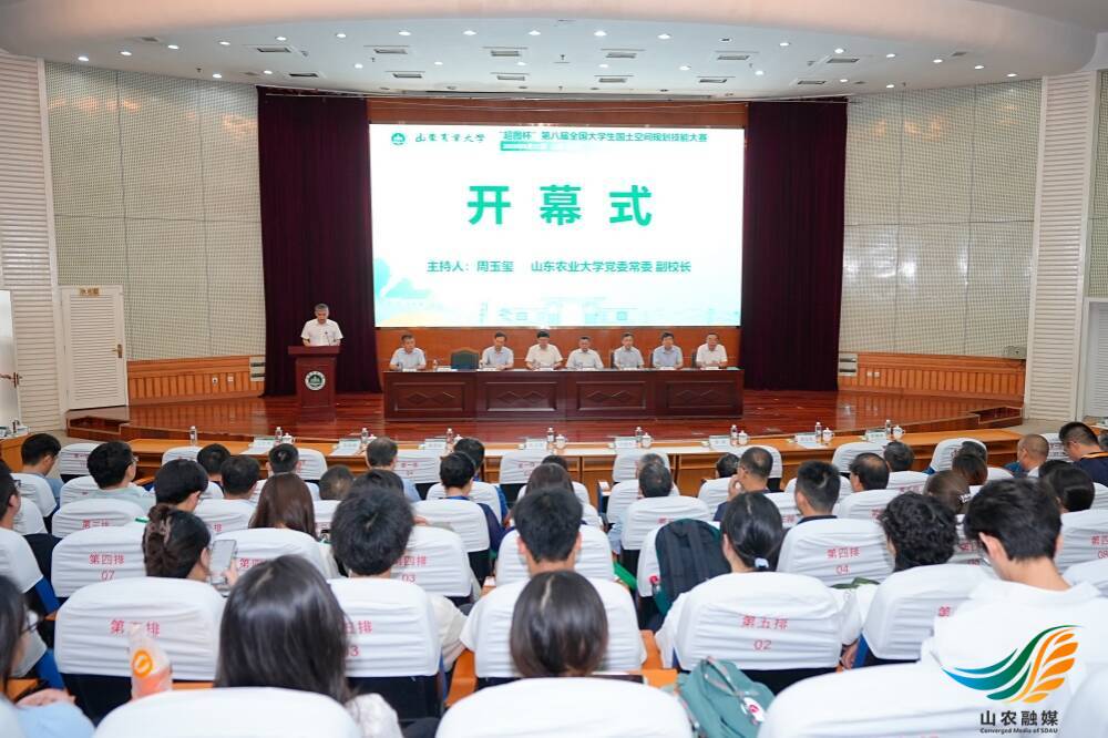 山農融媒8月24日訊 8月22日,“超圖杯”第八屆全國大學生國土空間規劃技能大賽決賽在學校舉行。本屆大賽主題為“智繪國土藍圖,賦能城鄉發展,守護生態綠韻”,來自全國的63支優秀參賽隊伍同臺競技,來自全國各地國土空間規劃領域的專家學者匯聚一堂,共同探討國土空間規劃領域的先進理論、方法與技術。自然資源部國土空間規劃局副局長苗澤,山東農業大學黨委副書記、校長冷暢儉,教育部公共管理類學科專業教學指導委會副主任委員、全國高校土地資源管理院長(系主任)聯席會會長、南京農業大學公共管理學院教授歐名豪出席開幕式并致辭。學校黨委常委、副校長周玉璽主持開幕式。