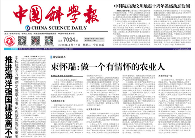 大家情懷!中國科學報頭版點贊束懷瑞院士