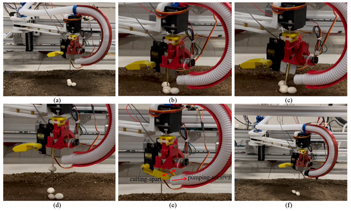雙孢蘑菇是目前世界上栽培最廣泛、產(chǎn)量最多、消費最多的食用菌。雙孢菇疏蕾環(huán)節(jié)需要大量人工作業(yè),費時費力,成本高,限制了雙孢菇產(chǎn)業(yè)的規(guī)模化發(fā)展。菇蕾生長在栽培床上,作業(yè)空間有限,對疏蕾模式和末端執(zhí)行器的設(shè)計提出了極高的要求,一直是世界雙孢菇產(chǎn)業(yè)發(fā)展的卡脖子技術(shù)。該研究針對菇蕾生長密集、目標(biāo)小、疏蕾時不能損傷其它菇蕾、菇床不能有殘留和疏蕾后丟棄的特點,在國際上首次提出了一種新疏蕾模式,并創(chuàng)新設(shè)計了一種新型的雙孢菇疏蕾末端執(zhí)行器實現(xiàn)低損傷、高效疏蕾。通過疏蕾動態(tài)過程有限元分析,明確了疏蕾過程中末端執(zhí)行器部件-菇蕾-基質(zhì)的分離機理,優(yōu)化了末端執(zhí)行器的結(jié)構(gòu)設(shè)計和作業(yè)參數(shù),對提升疏蕾性能具有重要的理論依據(jù)。