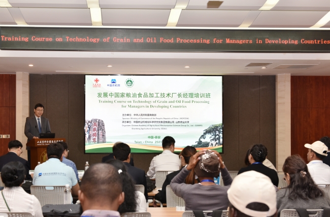 5月25日至31日,發展中國家糧油食品加工技術廠長經理培訓班在我校舉辦,來自巴巴多斯、加納、尼泊爾、蒙古、巴基斯坦和斯里蘭卡的23名農業專員參加培訓。山東農業大學黨委常委、副校長王勇,中國農業機械化科學研究院集團有限公司國際合作中心主任馬騰出席開班儀式并致辭。