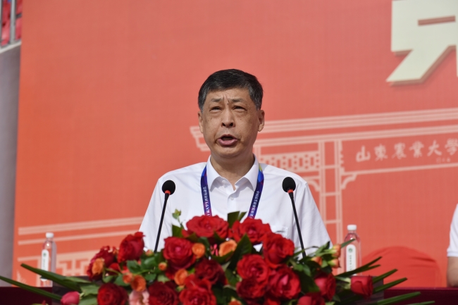 冷暢儉代表山東農(nóng)業(yè)大學(xué)向大賽表示熱烈祝賀,向與會(huì)的領(lǐng)導(dǎo)、嘉賓、領(lǐng)隊(duì)、教練員和運(yùn)動(dòng)員表示誠(chéng)摯歡迎。他介紹了學(xué)校的辦學(xué)特色、亮點(diǎn),介紹了學(xué)校沖擊國(guó)家一流學(xué)科、創(chuàng)辦一流農(nóng)業(yè)大學(xué)的信心決心,期盼高校同仁一如既往地支持山東農(nóng)業(yè)大學(xué)的發(fā)展建設(shè)。