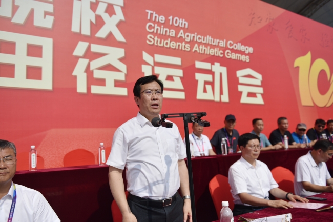 夏至?xí)r節(jié),端午濃情。6月21日,中國(guó)高等農(nóng)業(yè)院校第十屆大學(xué)生田徑運(yùn)動(dòng)會(huì)在泰山腳下的山東農(nóng)業(yè)大學(xué)舉行,來自中國(guó)農(nóng)業(yè)大學(xué)、南京農(nóng)業(yè)大學(xué)、北京林業(yè)大學(xué)等36所農(nóng)業(yè)院校的近800名運(yùn)動(dòng)員報(bào)名參賽。山東農(nóng)業(yè)大學(xué)黨委書記徐劍波宣布運(yùn)動(dòng)會(huì)開幕,黨委副書記、校長(zhǎng)冷暢儉致開幕詞。
