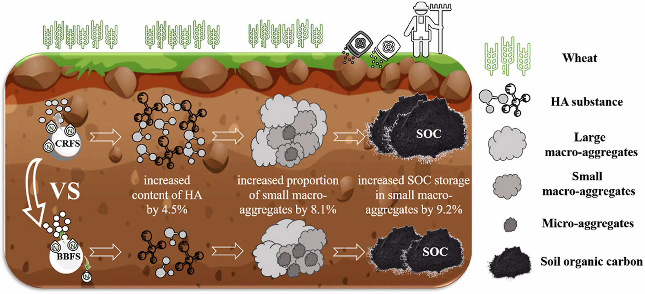 圖1.秸稈還田配施緩控釋肥對土壤團聚體分布和有機碳固存的影響及機制