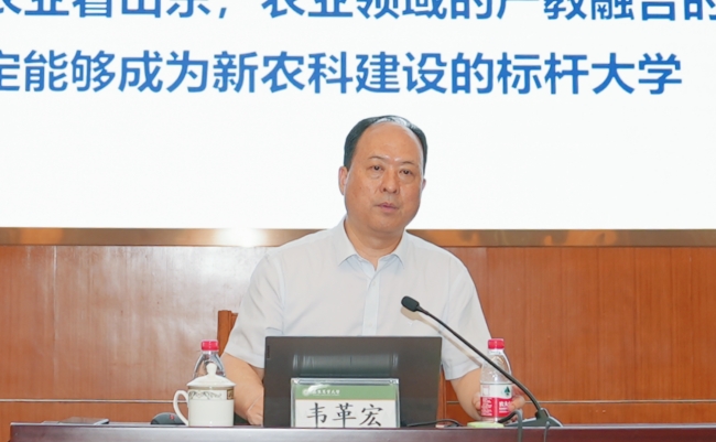 徐劍波在講話中指出,建設一流農業大學,沖擊雙一流,是歷史和時代賦予我們的光榮使命,是社會各界對學校發展的共同期望,也是全校師生聚力攻堅、翹首期盼的大事。徐劍波強調,一流的學科建設,必須有一流的黨建領導,全力爭創國家一流學科,奮力實現在省屬高校中率先進入國家“雙一流”建設行列的奮斗目標,就需要以政治建設為統領,加強黨對學校工作的全面領導,增強“沖一流”建設決策力、領導力,保證“沖一流”建設始終沿著正確方向推進。扎根齊魯大地,扛起強農興農責任擔當,要凝聚全校發展共識,深化綜合改革,創新完善辦學機制,著力破解“沖一流”建設的頑瘴痼疾,有效激發辦學主體的積極性,實現辦學資源高效利用。要強化原始創新驅動力,堅持“四個面向”,注重“頂天立地”,推進高水平、多學科、跨專業產學研協同創新平臺建設,聚力開展有組織科研攻關,全力攻克“卡脖子”關鍵核心技術。要強化高端人才供給力,一體化推進人才、學科、專業、平臺、項目建設,圍繞學科方向匯聚人才、發展人才,完善人才激勵和約束機制,擴大學院人才工作自主權。要強化鄉村振興支撐力,持續推進多方共建產業研究院等科教融合平臺,實現人才鏈、教育鏈、產業鏈、創新鏈“四鏈”融合,創建“六打通”新型研發機構。各級干部要堅持不懈講政治、抓學習、勇擔當、守底線,在深入開展主題教育中扛起擔當,高站位謀劃、高起點啟動、高標準推進“雙一流”建設,全面打贏攻堅戰,確保交出不負師生期望、不負歷史使命的高質量發展新答卷。