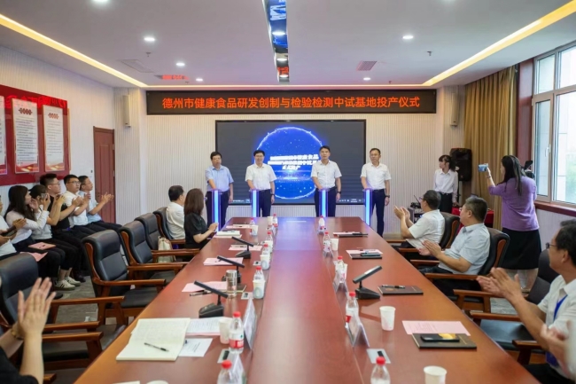 活動期間,冷暢儉一行與王峰等樂陵市相關負責人到山東農業大學樂陵金絲小棗科技小院看望了正在學習的研究生,并與研究生進行了深入交流,勉勵大家珍惜樂陵市委市政府搭建的良好平臺,多出成果,更好服務地樂陵市特色產業發展。冷暢儉還考察了樂陵市體育產業、調味品產業發展情況,共同見證學校和樂陵市共建的德州市健康食品研發創制與檢驗檢測中試基地正式投產。