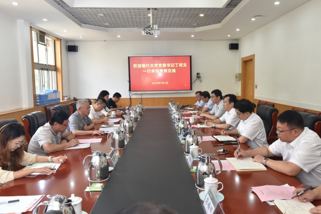 9月4日,喀什大學黨委書記丁邦文一行來校訪問。山東農業大學黨委書記徐劍波,黨委副書記、校長冷暢儉會見客人。喀什大學副校長羅浩波,山東農業大學黨委常委、副校長王勇參加活動。