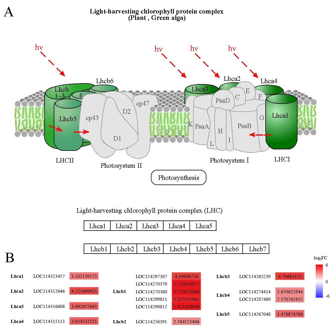 茶樹由于其自身特性的限制,高頻、穩(wěn)定的體細(xì)胞胚系統(tǒng)仍未建立,也因此極大的限制了其遺傳研究和育種進(jìn)程。在這項(xiàng)研究中,采用轉(zhuǎn)錄組來闡明茶樹體細(xì)胞胚間接發(fā)生中的基因表達(dá)調(diào)控機(jī)制。IS_PS、ES_IS和ES_PS階段的的DEGs數(shù)量分別為109、2848和1697。富集分析表明,碳水化合物代謝過程在ES_IS階段顯著富集,在體細(xì)胞胚生成中起到關(guān)鍵作用,而光系統(tǒng)Ⅰ中光捕獲的增強(qiáng)可以為碳水化合物提供物質(zhì)基礎(chǔ)。途徑分析表明,IS_PS過程中富集的途徑遠(yuǎn)少于ES_IS或ES_PS,ES_IS或ES_PS階段DEGs的光合作用和光合作用天線蛋白途徑顯著富集和上調(diào)。茶樹體細(xì)胞胚發(fā)生中關(guān)鍵的光合作用與光合作用天線蛋白途徑和Lhcb1基因被發(fā)現(xiàn)。這些結(jié)果對闡明茶樹體細(xì)胞胚胎發(fā)生的機(jī)制和茶樹育種研究具有重要意義。