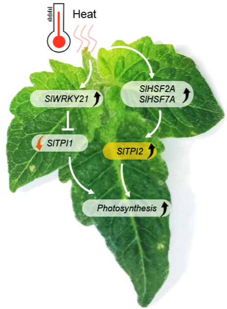 高溫脅迫下SlWRKY21、SlHSF2A及SlHSF7A被誘導上調表達。其中 SlWRKY21抑制耐熱能力差的SlTPI1的表達。而SlHSF2A及SlHSF7A激活了耐熱能力強的SlTPI2表達,增強了高溫脅迫下的光合能力。