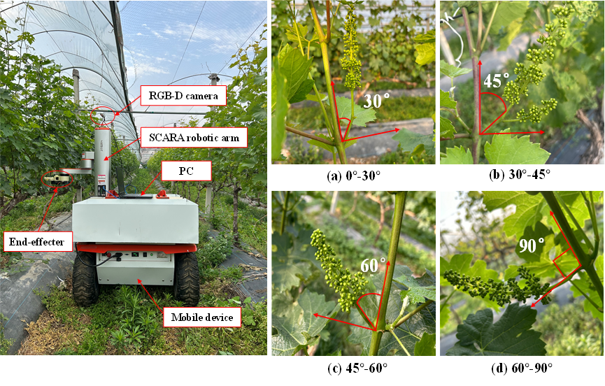 圖1.鮮食葡萄疏花機器人和鮮食葡萄生長環境